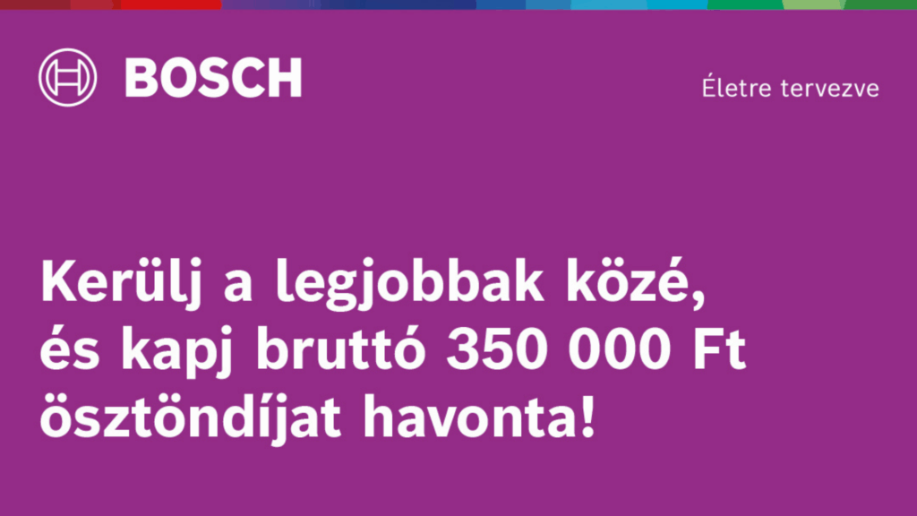 Ha tehetséges, ambiciózus hallgató vagy, és a maximumot szeretnéd kihozni a tanulmányaidból, mindezt havi bruttó 350 000 Ft-os ösztöndíjjal megtámogatva, akkor a BEST – Bosch Engineering Scholarship Team Program a neked való!